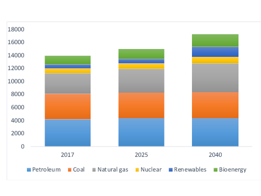 Figure 1: IEA projections only show modest renewable increase by 2040, Global primary energy use, Mtoe