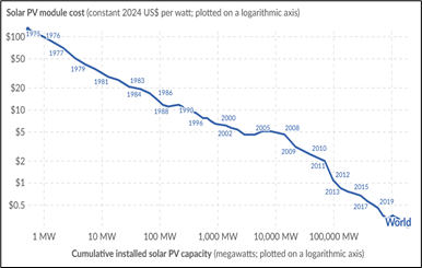 The point that cannot be overemphasized is the enormous stimulus to innovation, on both the supply and demand sides, that is being created by the plummeting cost of converting light into electricity. In effect we are witnessing a phenomenon analogous to what “Moore’s Law” did to drive the infotech revolution—i.e., the exponential reduction over many years in the cost a transformative technology.8What’s holding us back?